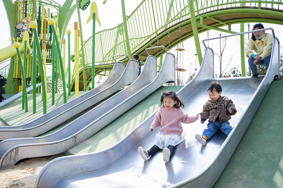 无论是取水装置,戏水沙坑,还是秋千爬网,这些游玩设施都需要多人参与,在互相配合之中不仅能体会妙趣,也在游戏中慢慢建立起友善而亲密的关系。